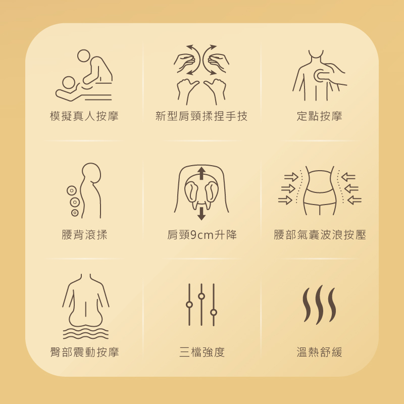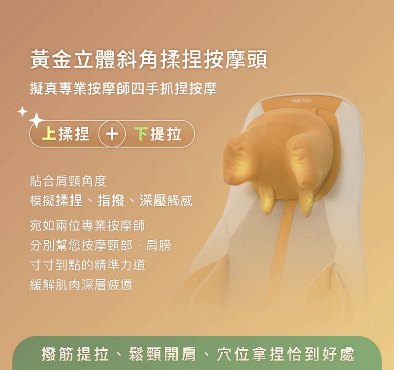 4、揉捏 x 指壓 x 氣壓 x 捶打 x 震動 x 溫熱 六合一