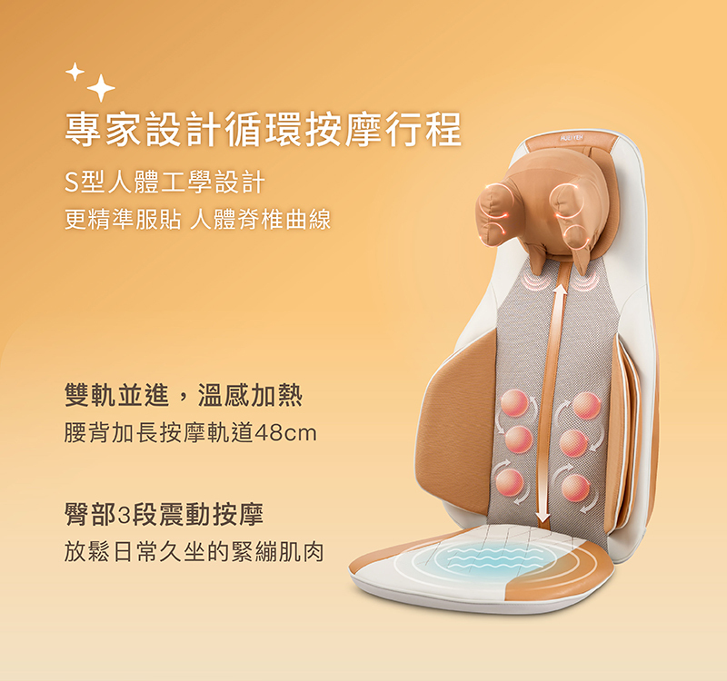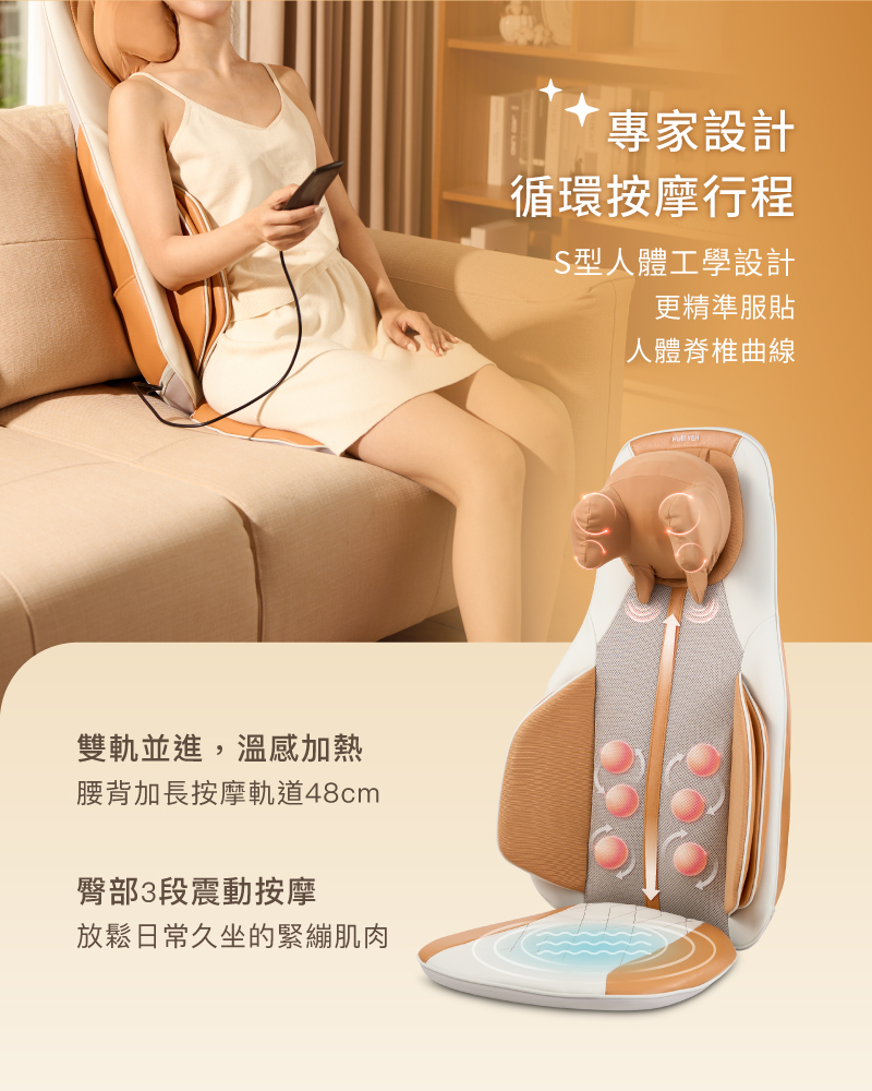 3、腰背捶打指揉壓 x 獨立溫熱滾輪