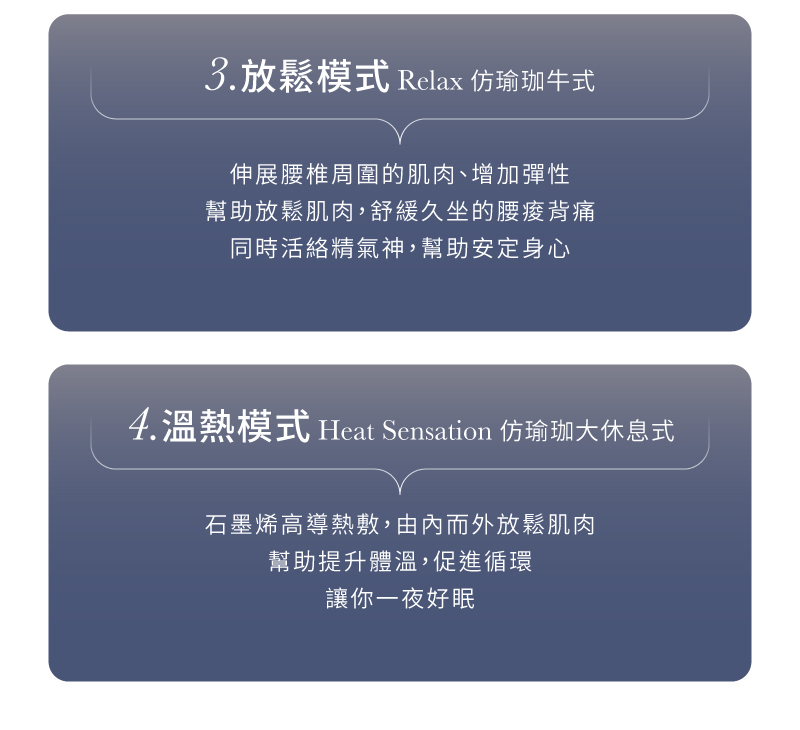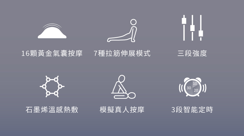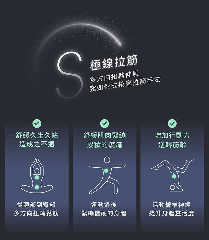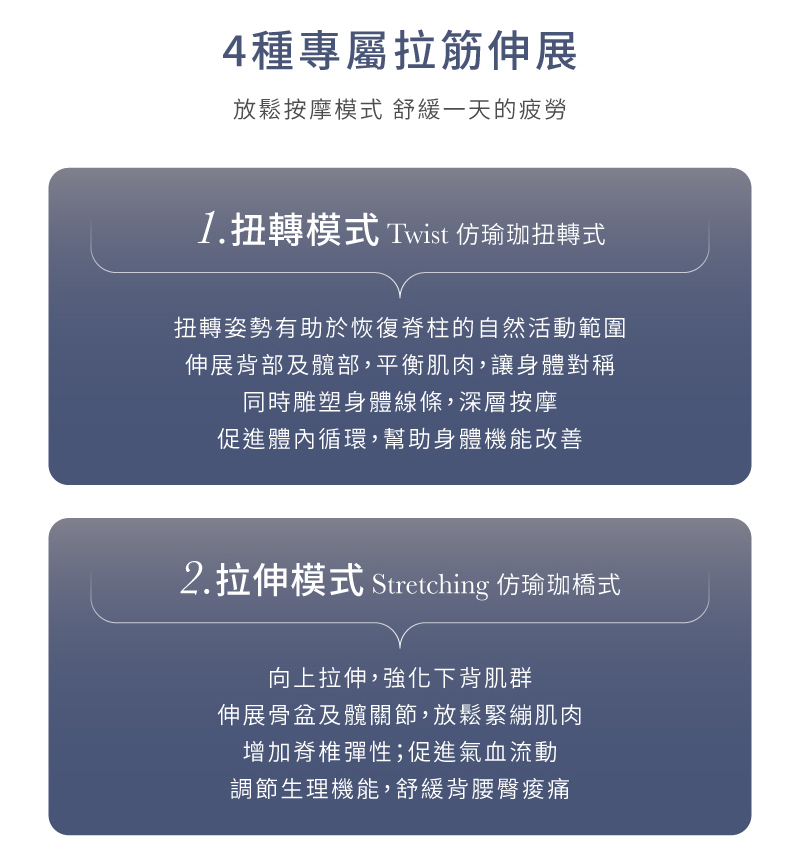 4種專屬拉筋伸展放鬆按摩模式,居家按摩兼做被動式瑜珈