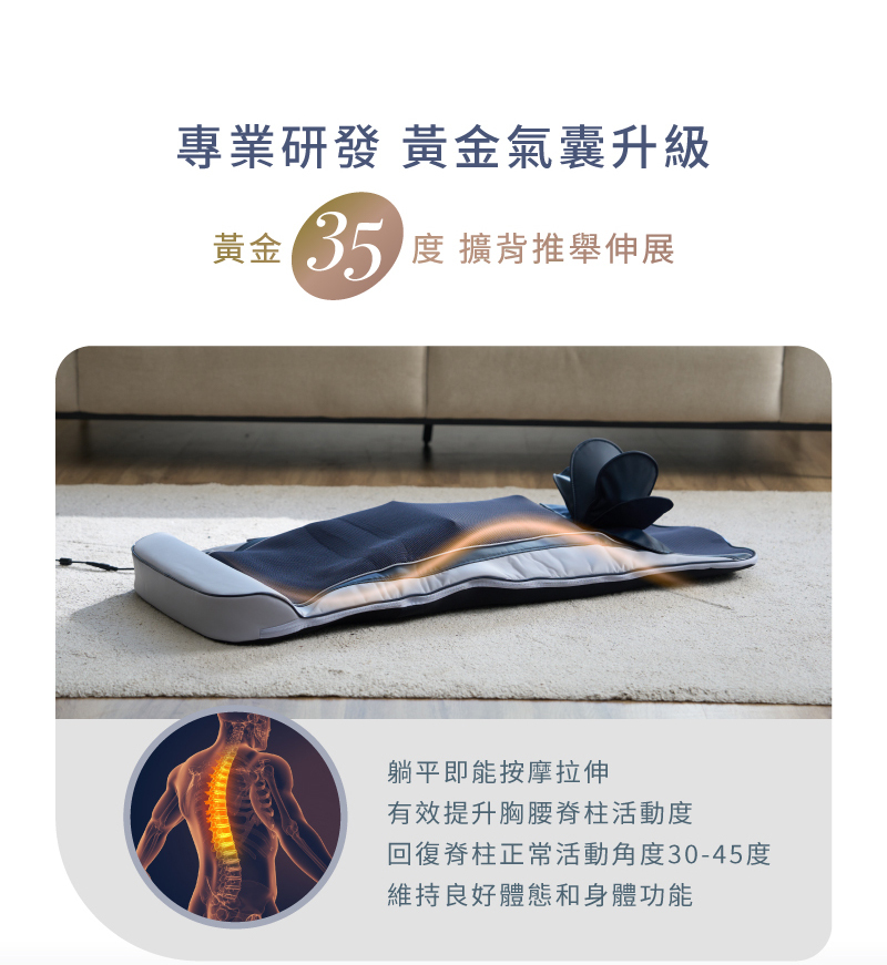 黃金角度全氣囊升級,擴背推舉伸展回歸脊柱原有活動彈性